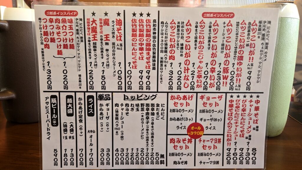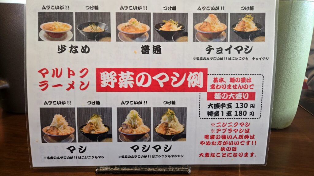 | コメント | 二郎系ラーメン。他、葛島町・若草町・神田・高岡に店舗あり |